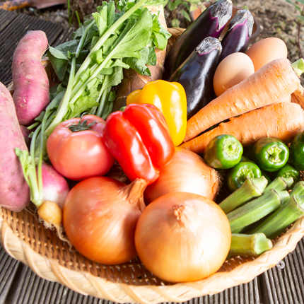 皆様に美味しい朝食を食べて頂きたく、自家菜園の野菜を中心とした安心・安全な地元の食材を使用しています。